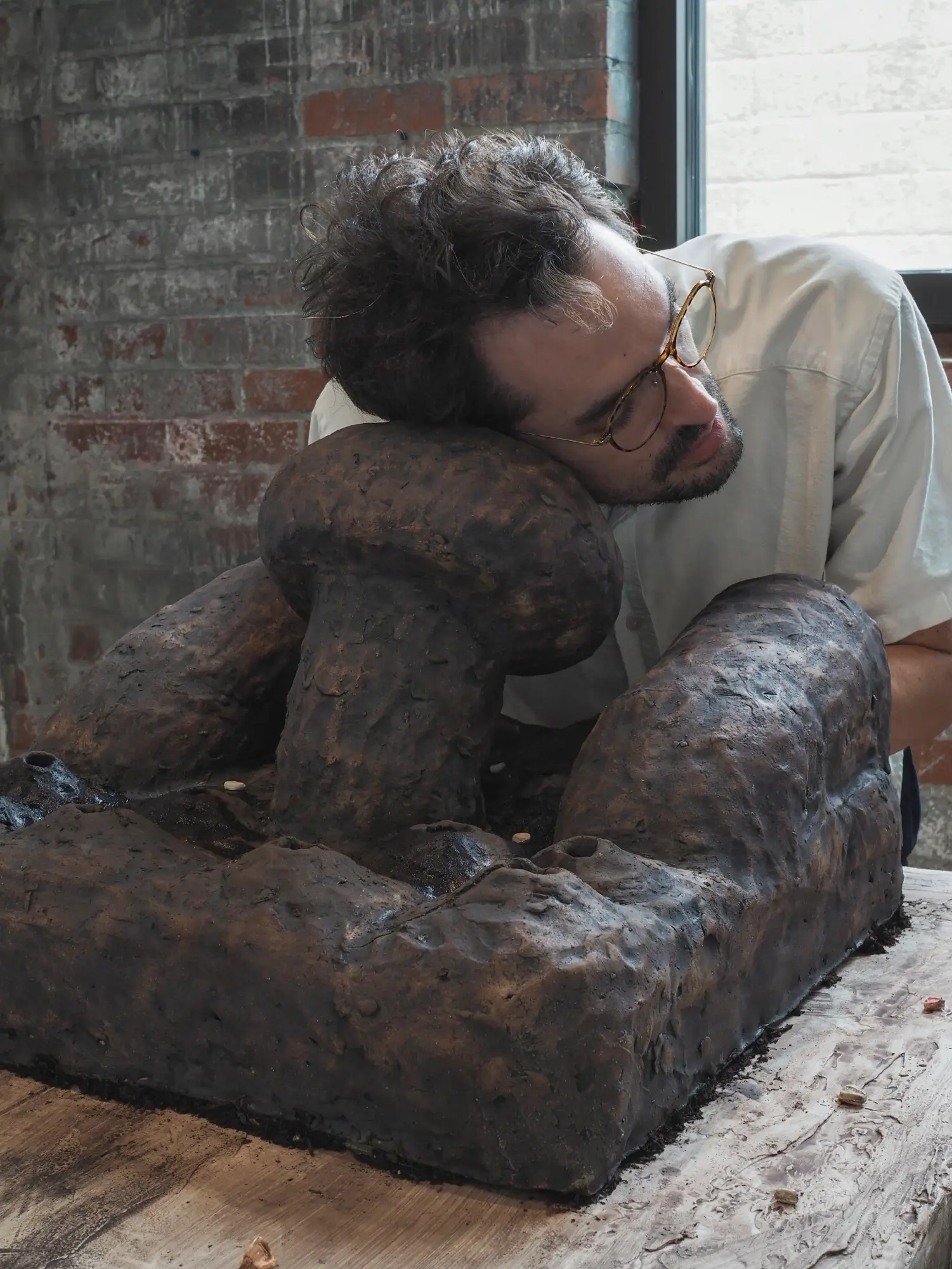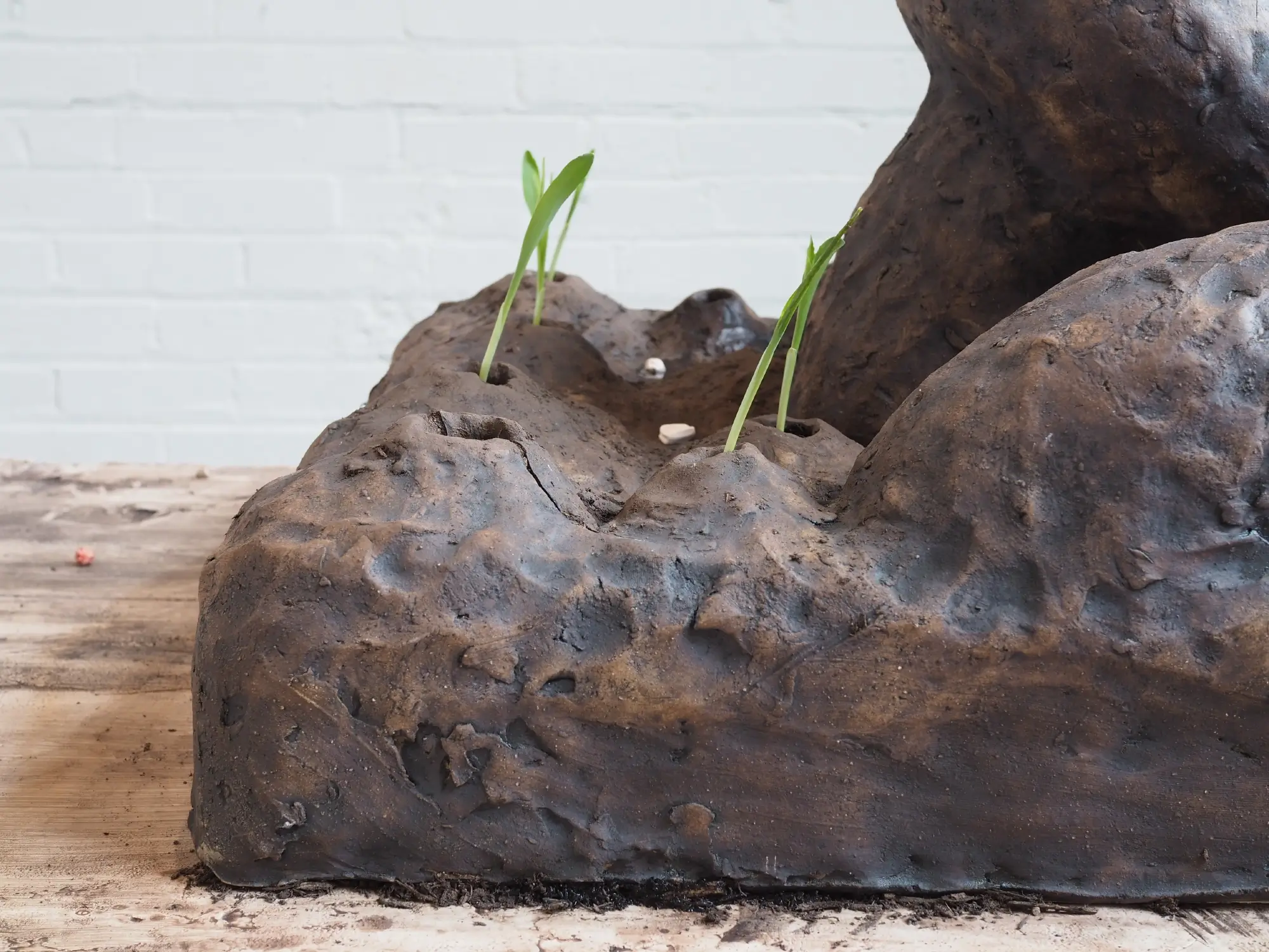 Stoneware, sinter wash, sinter engobe, speaker, soil, maíz seeds, plywood, fiberglass screen, hydrocal • 74” L x 32”W x 62”H • 2025